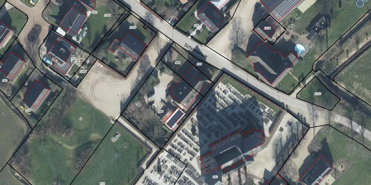 Het perceel waarop Schoolstraat 5 staat heeft een oppervlakte van 1073 m². Dit is een zeer groot perceel. De perceeloppervlakte wordt geregistreerd door het Kadaster. Gedetailleerde informatie over de maten van dit perceel kunt u vinden in het rapport Kadastrale kaart met maatvoering van Schoolstraat 5.