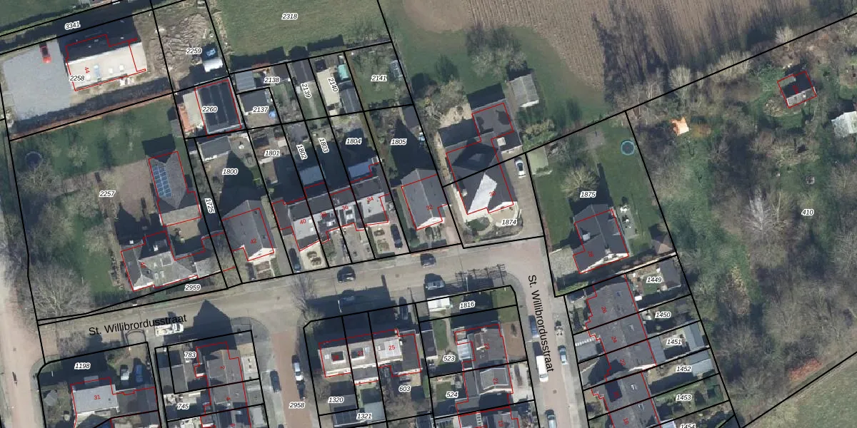 Het perceel waarop St. Willibrordusstraat 32 staat heeft een oppervlakte van 400 m². Dit is een groot perceel. De perceeloppervlakte wordt geregistreerd door het Kadaster. Gedetailleerde informatie over de maten van dit perceel kunt u vinden in het rapport Kadastrale kaart met maatvoering van St. Willibrordusstraat 32.