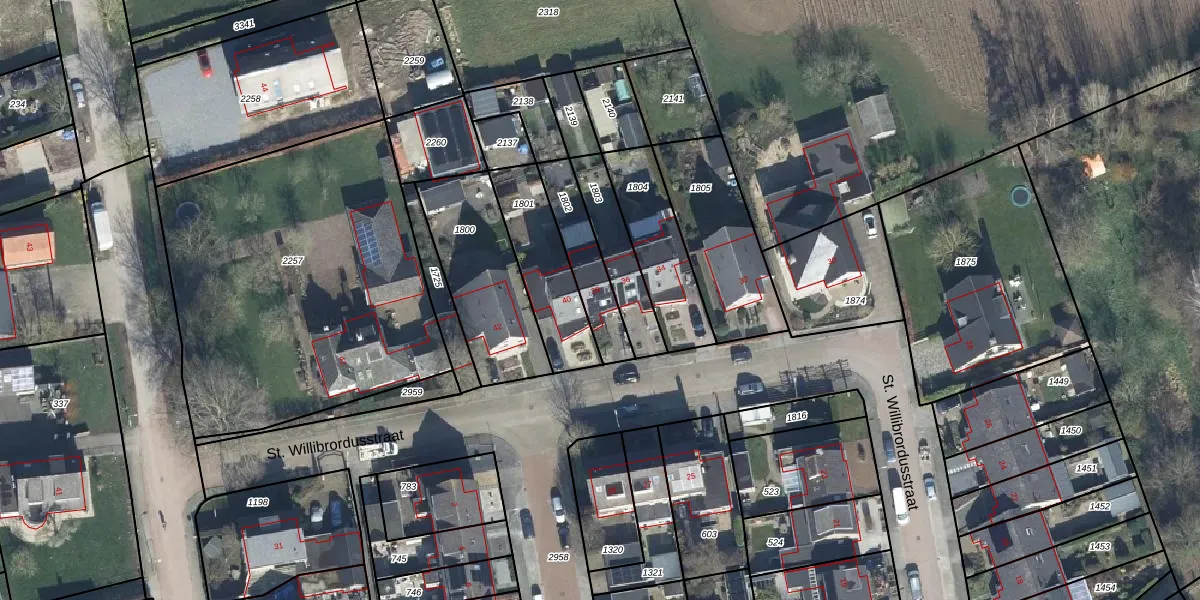 St. Willibrordusstraat 38 is gelegen op kadastraal perceel VBG02G1802. Deze kadastrale aanduiding is uniek en wordt gebruikt door het Kadaster om eigendomsrechten en andere zakelijke rechten vast te leggen. Het perceel maakt onderdeel uit van de kadastrale gemeente Valburg.
