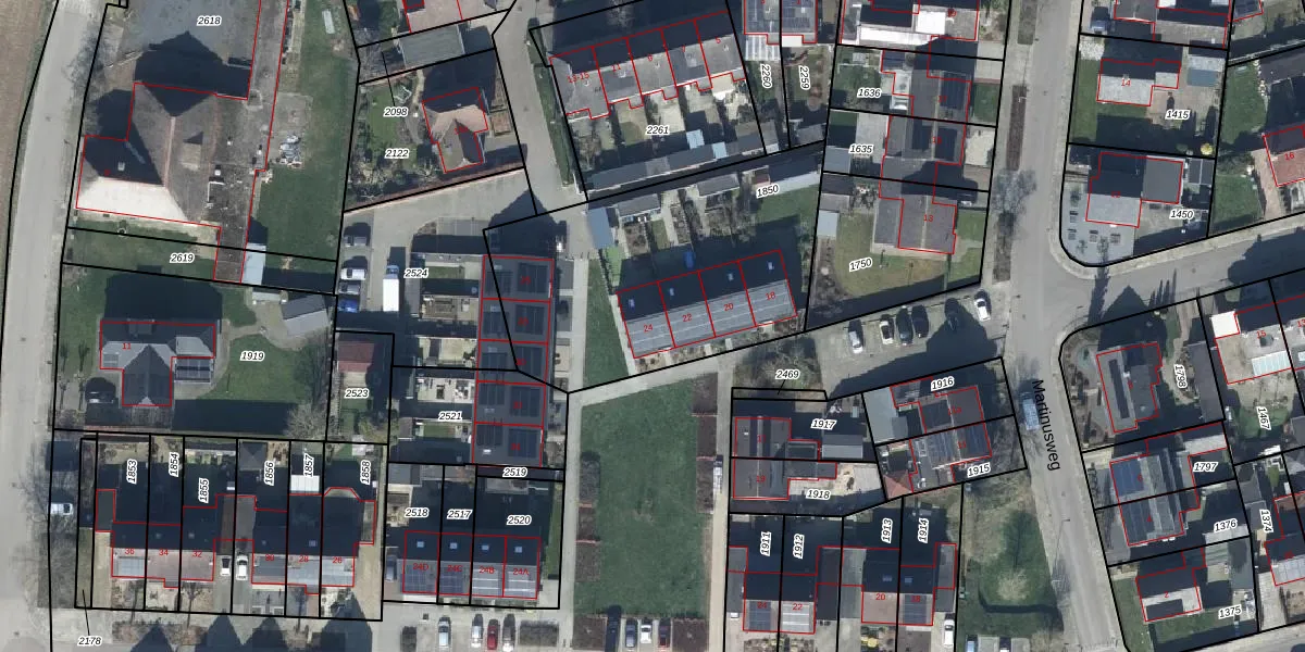 Het perceel waarop het adres ligt is HWN01-B-1850. De afkorting 'HWN01' staat voor kadastrale gemeente Herwen. Het perceel is kleiner dan gemiddeld in Herwen. Het perceel is 1335 m² groot, terwijl het gemiddelde ligt op 8339,76 m². Het grootste perceel in de kadastrale gemeente is 44,4 ha. Het kleinste perceel heeft een oppervlakte van 1 m². Er zijn 7 adressen aanwezig op het perceel. De huidige grenzen van het perceel zijn digitaal in de Basisregistratie Kadaster (BRK) geregistreerd op 29-09-2005.