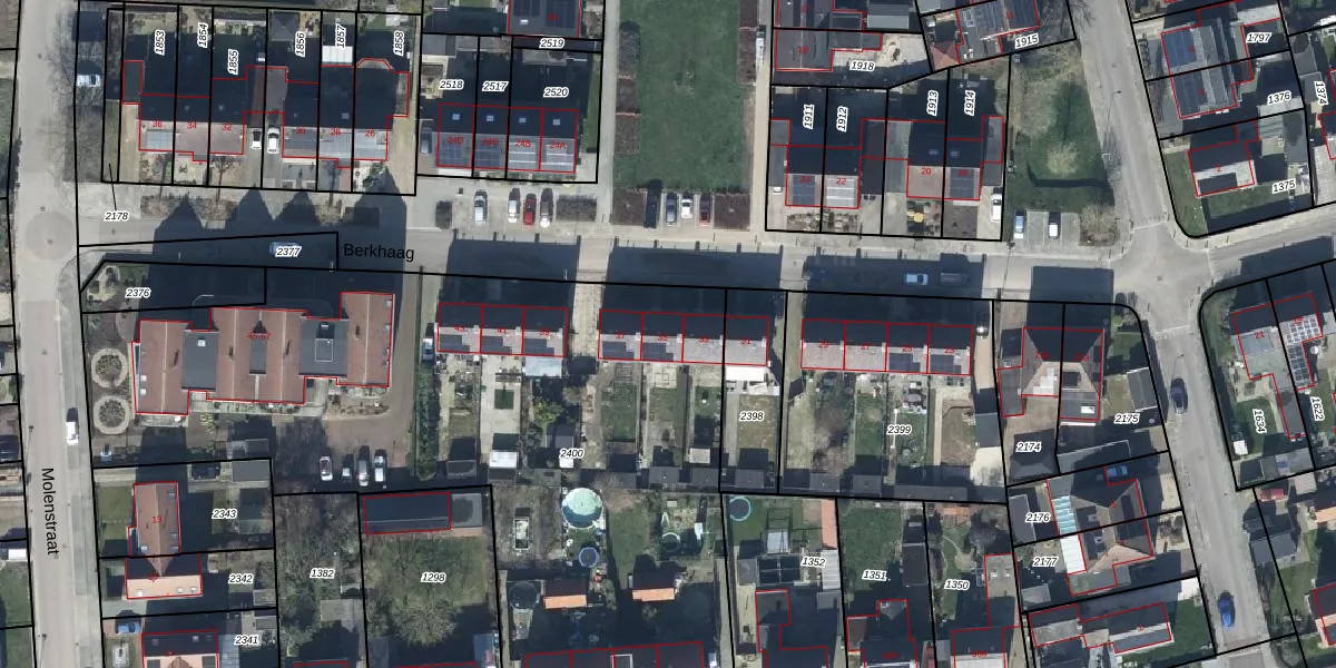 Het perceel waarop Berkhaag 35 staat heeft een oppervlakte van 4069 m². Dit is een zeer groot perceel. De perceeloppervlakte wordt geregistreerd door het Kadaster. Gedetailleerde informatie over de maten van dit perceel kunt u vinden in het rapport Kadastrale kaart met maatvoering van Berkhaag 35.