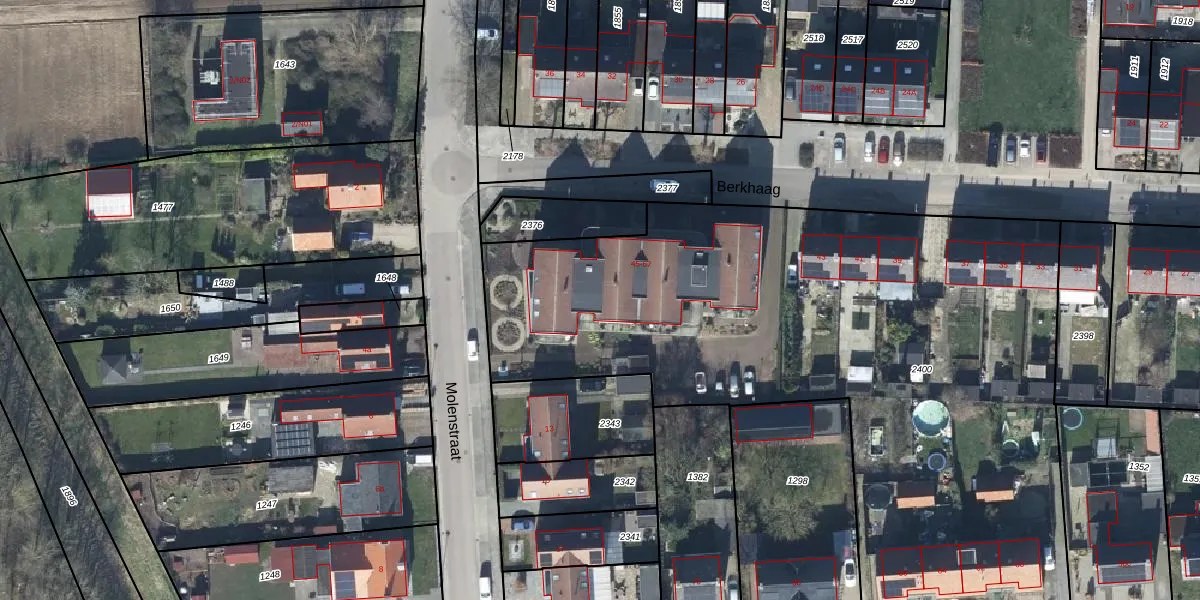 Het perceel waarop Berkhaag 61 staat heeft een oppervlakte van 4069 m². Dit is een zeer groot perceel. De perceeloppervlakte wordt geregistreerd door het Kadaster. Gedetailleerde informatie over de maten van dit perceel kunt u vinden in het rapport Kadastrale kaart met maatvoering van Berkhaag 61.