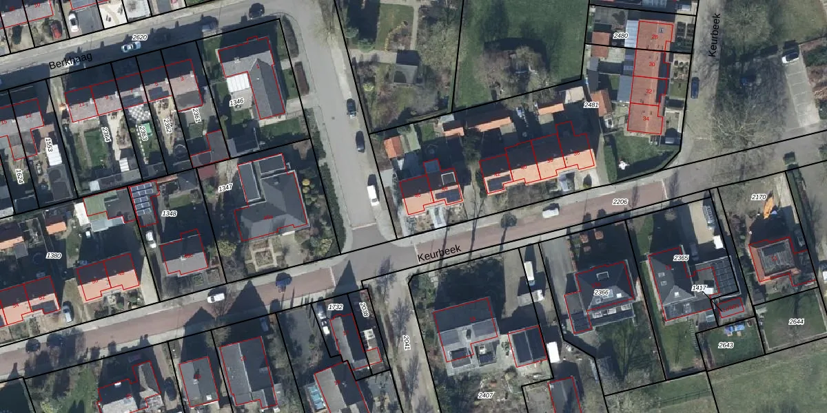 Het perceel waarop Keurbeek 46 staat heeft een oppervlakte van 2080 m². Dit is een zeer groot perceel. De perceeloppervlakte wordt geregistreerd door het Kadaster. Gedetailleerde informatie over de maten van dit perceel kunt u vinden in het rapport Kadastrale kaart met maatvoering van Keurbeek 46.