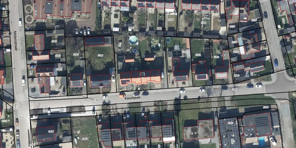 Het perceel waarop Keurbeek 62 staat heeft een oppervlakte van 4069 m². Dit is een zeer groot perceel. De perceeloppervlakte wordt geregistreerd door het Kadaster. Gedetailleerde informatie over de maten van dit perceel kunt u vinden in het rapport Kadastrale kaart met maatvoering van Keurbeek 62.