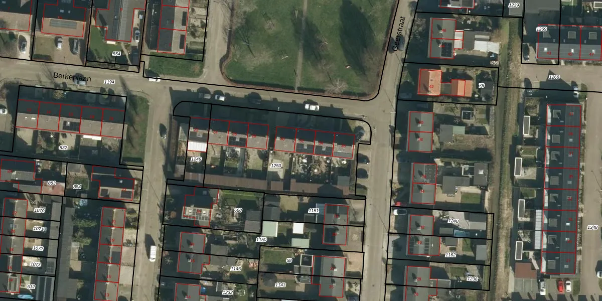 Het perceel waarop Berkenlaan 32 staat heeft een oppervlakte van 1395 m². Dit is een zeer groot perceel. De perceeloppervlakte wordt geregistreerd door het Kadaster. Gedetailleerde informatie over de maten van dit perceel kunt u vinden in het rapport Kadastrale kaart met maatvoering van Berkenlaan 32.