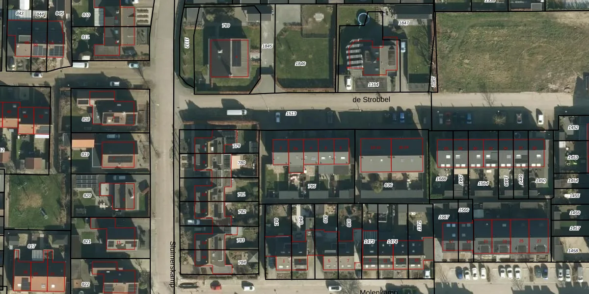 Het perceel waarop de Strobbel 2-a staat heeft een oppervlakte van 817 m². Dit is een groot perceel. De perceeloppervlakte wordt geregistreerd door het Kadaster. Gedetailleerde informatie over de maten van dit perceel kunt u vinden in het rapport Kadastrale kaart met maatvoering van de Strobbel 2-a.