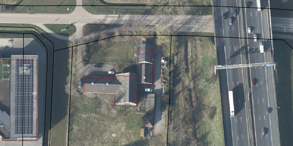 Het adres is gelegen op perceel 178 in de sectie F en de kadastrale gemeente Heteren. De kadastrale aanduiding is aldus HTR00-F-178. De oppervlakte van het perceel is 5860 m². Dat is groter dan gemiddeld in Heteren, waar de gemiddelde perceeloppervlakte op 5527,57 m² ligt. De grootste perceeloppervlakte in de kadastrale gemeente is 55,5 ha. De kleinste oppervlakte bedraagt 1 m². Op het perceel zijn 7 adressen aanwezig. De laatste wijziging in het de Basisregistratie Kadaster (BRK) was op 22-06-1999.