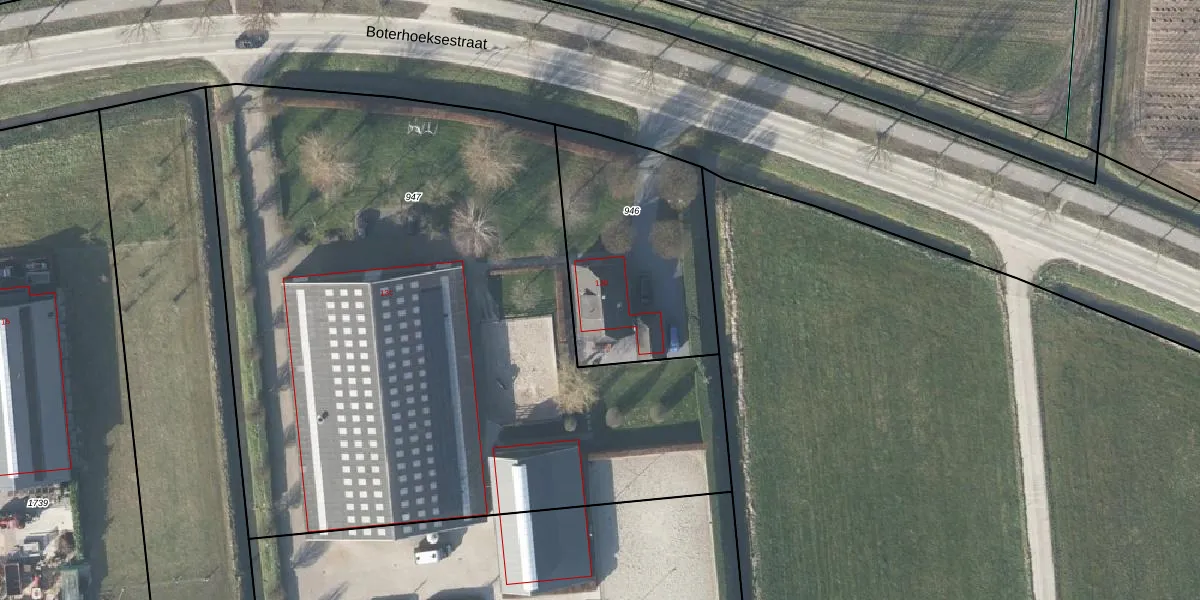 Het perceel waarop Boterhoeksestraat 13-b staat heeft een oppervlakte van 865 m². Dit is een groot perceel. De perceeloppervlakte wordt geregistreerd door het Kadaster. Gedetailleerde informatie over de maten van dit perceel kunt u vinden in het rapport Kadastrale kaart met maatvoering van Boterhoeksestraat 13-b.