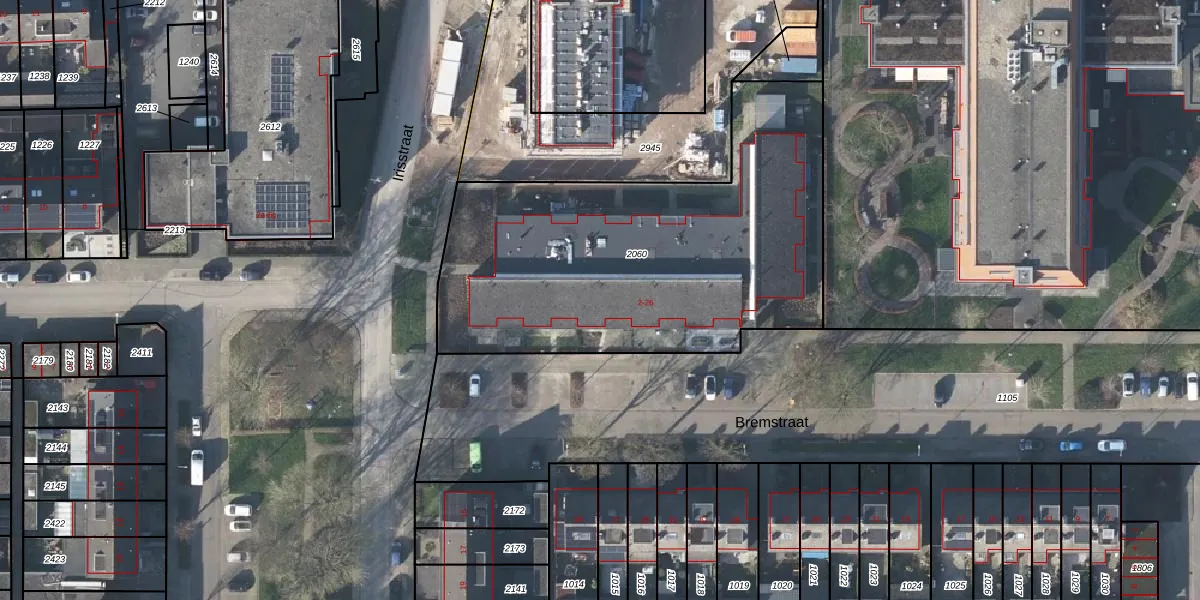Het perceel waarop Bremstraat 16 staat heeft een oppervlakte van 1995 m². Dit is een zeer groot perceel. De perceeloppervlakte wordt geregistreerd door het Kadaster. Gedetailleerde informatie over de maten van dit perceel kunt u vinden in het rapport Kadastrale kaart met maatvoering van Bremstraat 16.