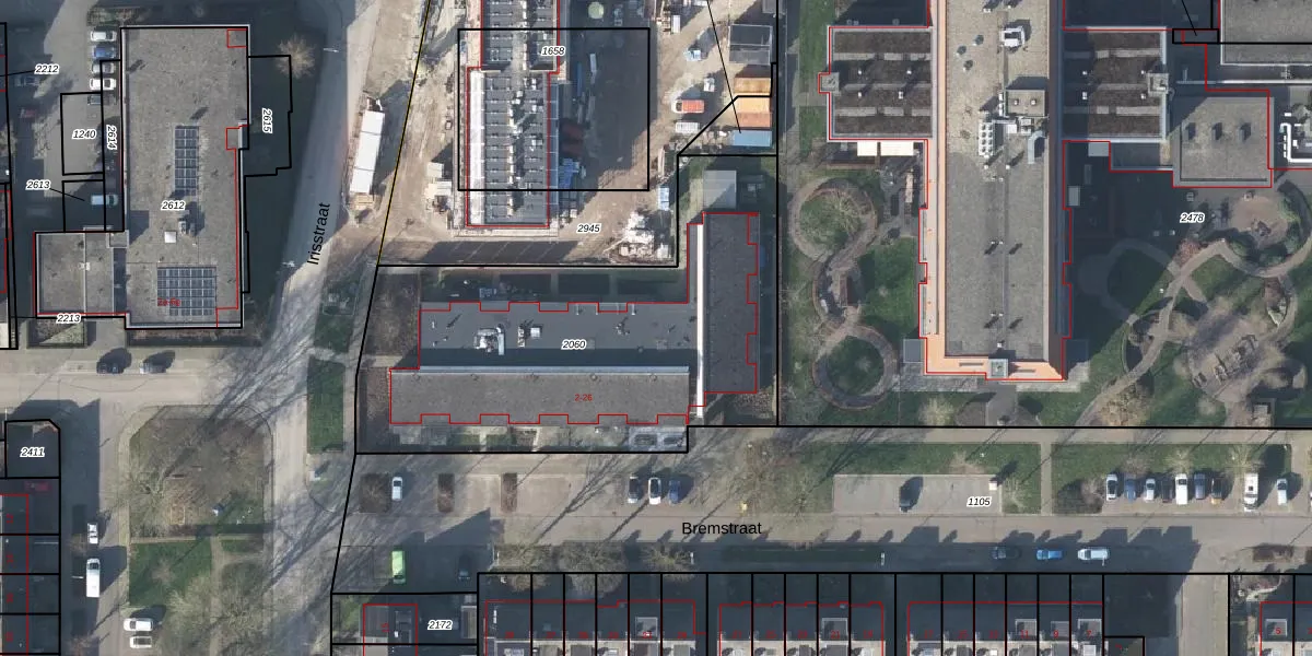 Het perceel waarop Bremstraat 2 staat heeft een oppervlakte van 1995 m². Dit is een zeer groot perceel. De perceeloppervlakte wordt geregistreerd door het Kadaster. Gedetailleerde informatie over de maten van dit perceel kunt u vinden in het rapport Kadastrale kaart met maatvoering van Bremstraat 2.