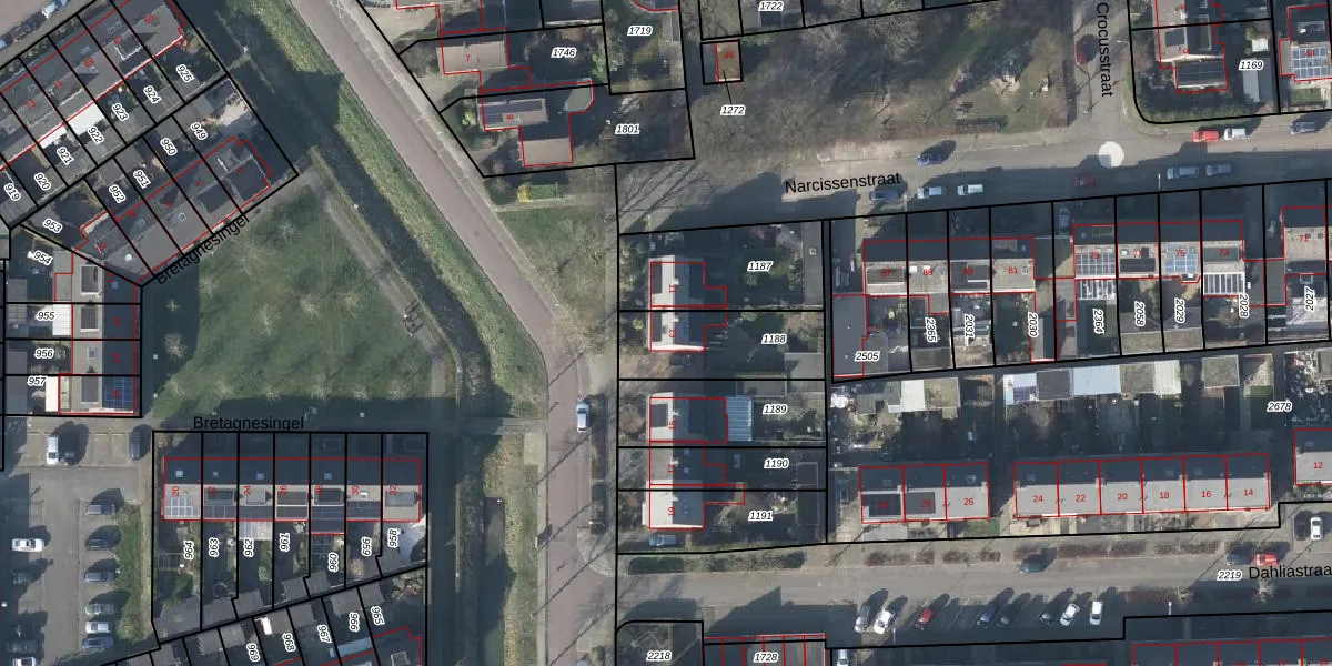Het perceel waarop Bretagnesingel 13 staat heeft een oppervlakte van 317 m². Dit is een groot perceel. De perceeloppervlakte wordt geregistreerd door het Kadaster. Gedetailleerde informatie over de maten van dit perceel kunt u vinden in het rapport Kadastrale kaart met maatvoering van Bretagnesingel 13.
