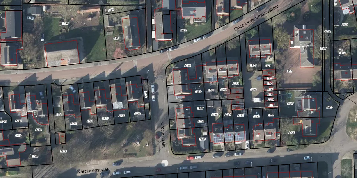 Gebruik de zoekbalk of klik op een perceel voor informatie over de adressen binnen dit perceel.