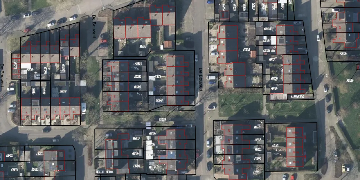 Het perceel waarop De Bouwert 51 staat heeft een oppervlakte van 959 m². Dit is een groot perceel. De perceeloppervlakte wordt geregistreerd door het Kadaster. Gedetailleerde informatie over de maten van dit perceel kunt u vinden in het rapport Kadastrale kaart met maatvoering van De Bouwert 51.