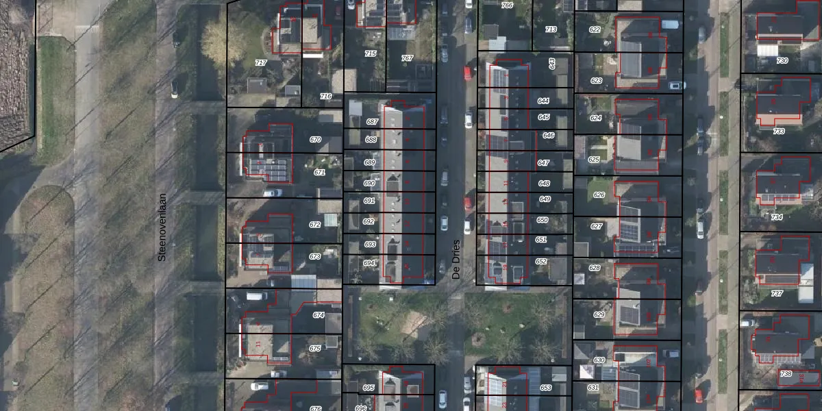 Gebruik de zoekbalk of klik op een perceel voor informatie over de adressen binnen dit perceel.