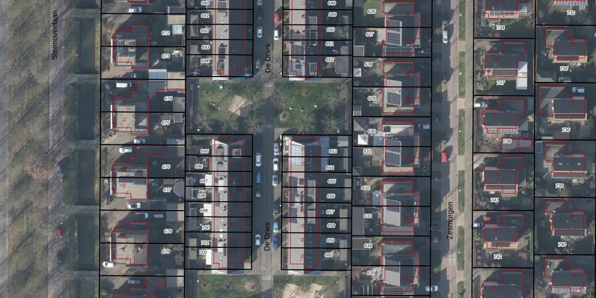 Het perceel waarop De Dries 21 staat heeft een oppervlakte van 173 m². Dit is een middelgroot perceel. De perceeloppervlakte wordt geregistreerd door het Kadaster. Gedetailleerde informatie over de maten van dit perceel kunt u vinden in het rapport Kadastrale kaart met maatvoering van De Dries 21.