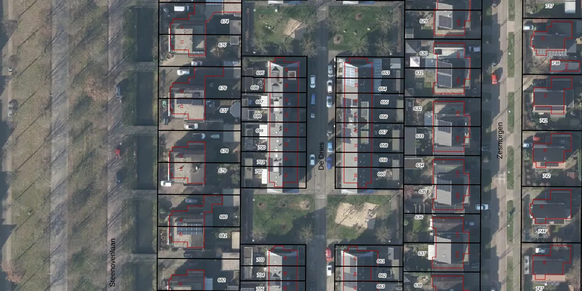 Het perceel waarop De Dries 28 staat heeft een oppervlakte van 115 m². Dit is een middelgroot perceel. De perceeloppervlakte wordt geregistreerd door het Kadaster. Gedetailleerde informatie over de maten van dit perceel kunt u vinden in het rapport Kadastrale kaart met maatvoering van De Dries 28.