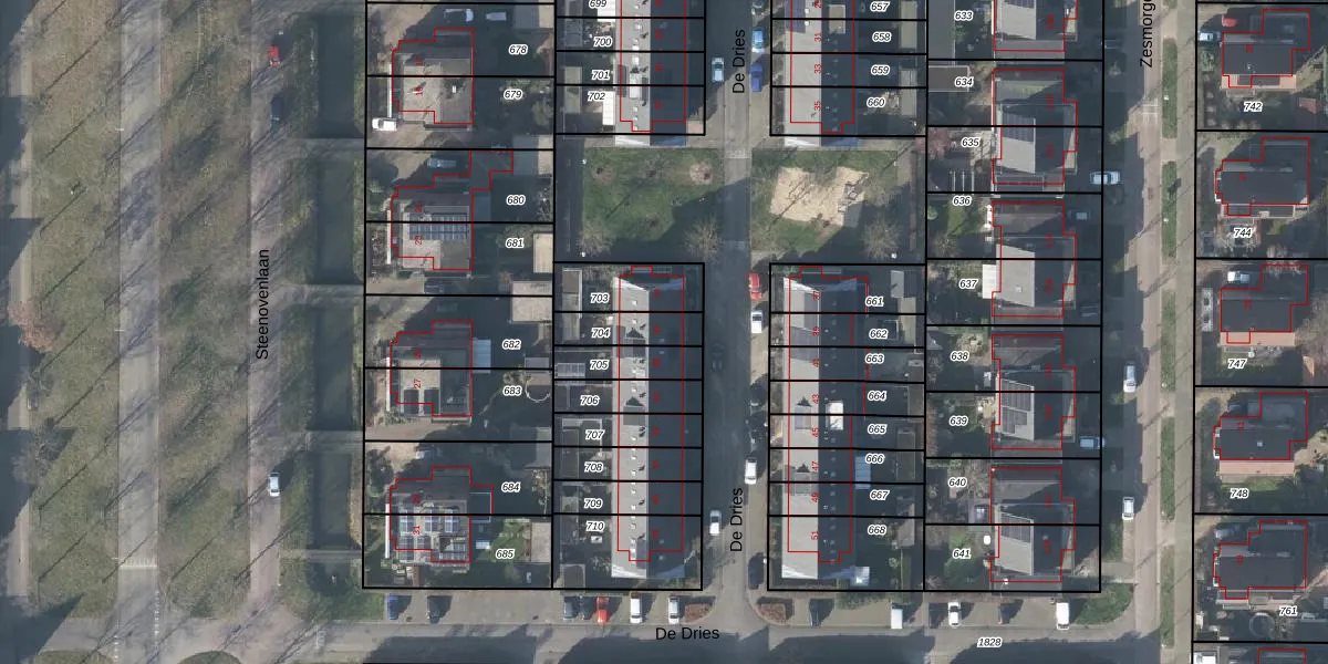Het perceel waarop De Dries 36 staat heeft een oppervlakte van 115 m². Dit is een middelgroot perceel. De perceeloppervlakte wordt geregistreerd door het Kadaster. Gedetailleerde informatie over de maten van dit perceel kunt u vinden in het rapport Kadastrale kaart met maatvoering van De Dries 36.