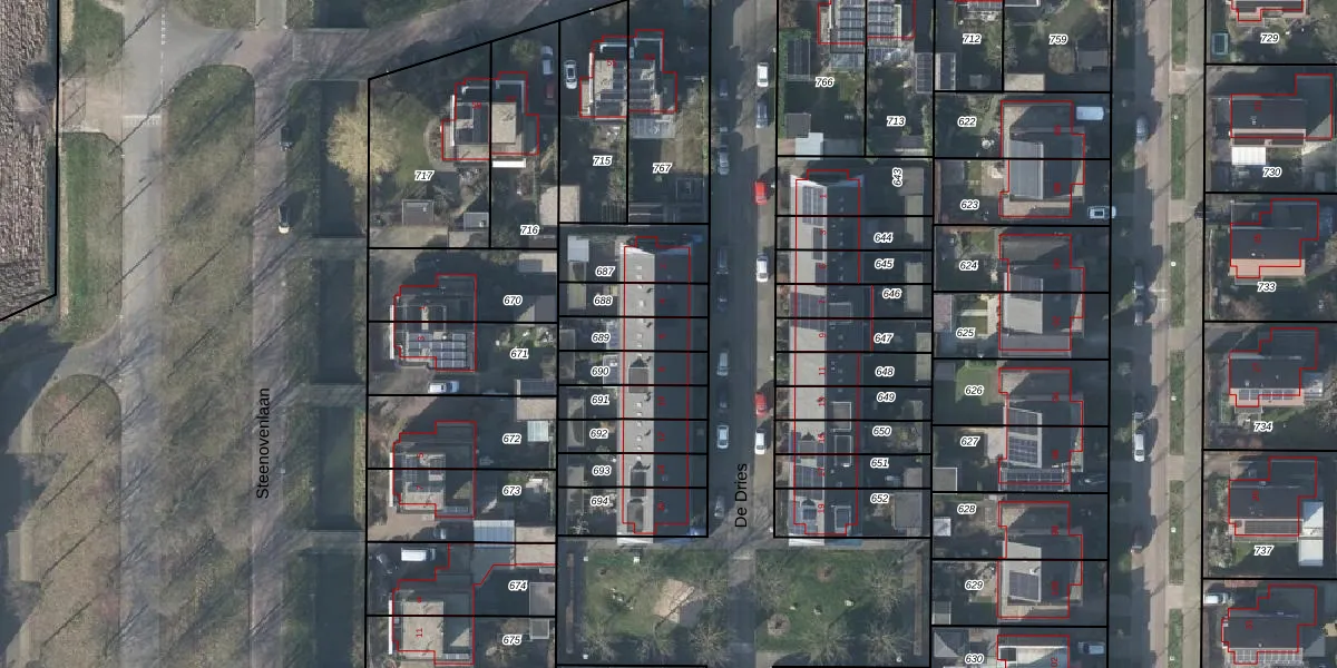 Het perceel waarop De Dries 6 staat heeft een oppervlakte van 115 m². Dit is een middelgroot perceel. De perceeloppervlakte wordt geregistreerd door het Kadaster. Gedetailleerde informatie over de maten van dit perceel kunt u vinden in het rapport Kadastrale kaart met maatvoering van De Dries 6.