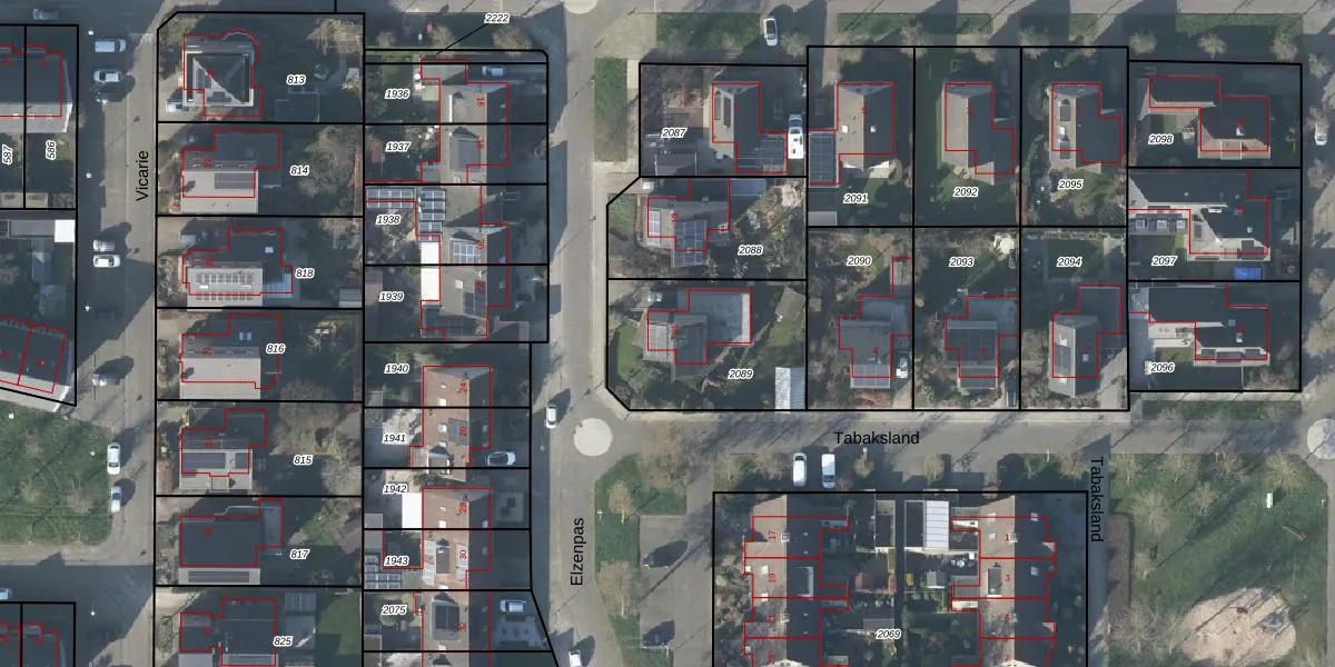 Gebruik de zoekbalk of klik op een perceel voor informatie over de adressen binnen dit perceel.