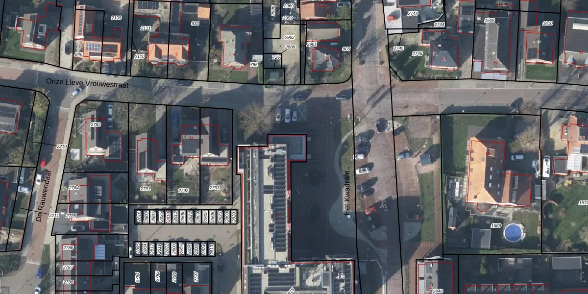 Het perceel waarop Het Kwadrant 1 staat heeft een oppervlakte van 1500 m². Dit is een zeer groot perceel. De perceeloppervlakte wordt geregistreerd door het Kadaster. Gedetailleerde informatie over de maten van dit perceel kunt u vinden in het rapport Kadastrale kaart met maatvoering van Het Kwadrant 1.