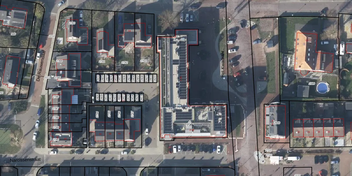 Het perceel waarop Het Kwadrant 12 staat heeft een oppervlakte van 1500 m². Dit is een zeer groot perceel. De perceeloppervlakte wordt geregistreerd door het Kadaster. Gedetailleerde informatie over de maten van dit perceel kunt u vinden in het rapport Kadastrale kaart met maatvoering van Het Kwadrant 12.