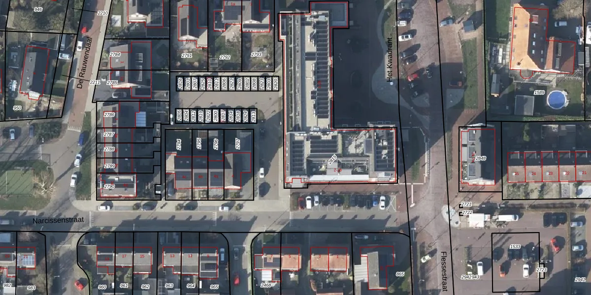 Het perceel waarop Het Kwadrant 14 staat heeft een oppervlakte van 1500 m². Dit is een zeer groot perceel. De perceeloppervlakte wordt geregistreerd door het Kadaster. Gedetailleerde informatie over de maten van dit perceel kunt u vinden in het rapport Kadastrale kaart met maatvoering van Het Kwadrant 14.