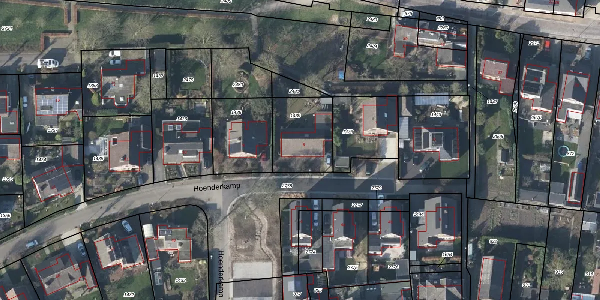 Het perceel waarop Hoenderkamp 8 staat heeft een oppervlakte van 498 m². Dit is een groot perceel. De perceeloppervlakte wordt geregistreerd door het Kadaster. Gedetailleerde informatie over de maten van dit perceel kunt u vinden in het rapport Kadastrale kaart met maatvoering van Hoenderkamp 8.