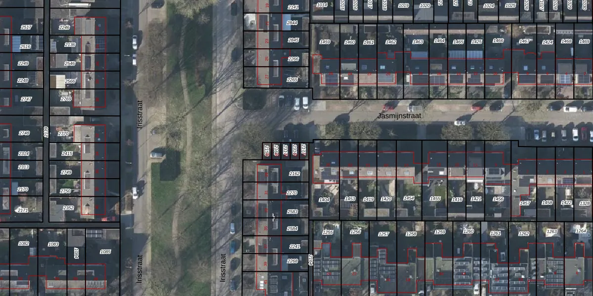 Het perceel waarop Jasmijnstraat 29 staat heeft een oppervlakte van 18 m². Dit is een klein perceel. De perceeloppervlakte wordt geregistreerd door het Kadaster. Gedetailleerde informatie over de maten van dit perceel kunt u vinden in het rapport Kadastrale kaart met maatvoering van Jasmijnstraat 29.