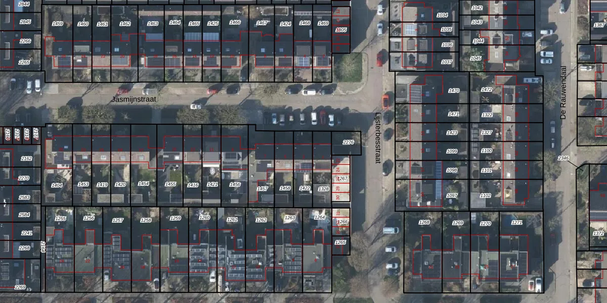 Gebruik de zoekbalk of klik op een perceel voor informatie over de adressen binnen dit perceel.