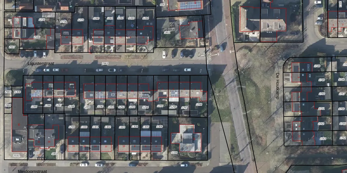 Ligusterstraat 5 is gelegen op kadastraal perceel HTR00C1296. Deze kadastrale aanduiding is uniek en wordt gebruikt door het Kadaster om eigendomsrechten en andere zakelijke rechten vast te leggen. Het perceel maakt onderdeel uit van de kadastrale gemeente Heteren.