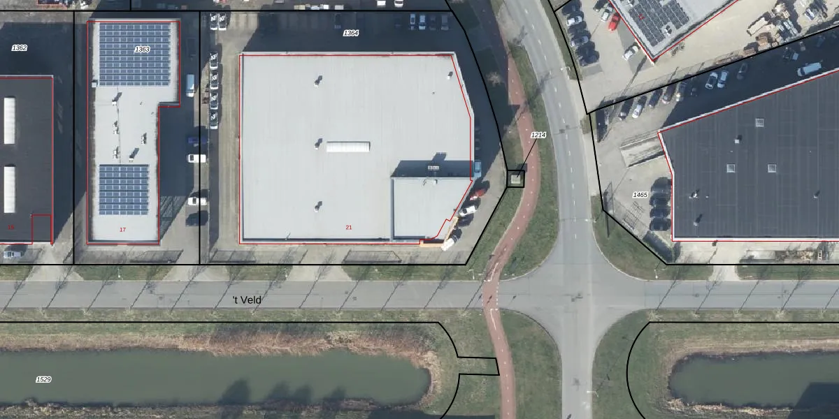 Het perceel waarop 't Veld 21 staat heeft een oppervlakte van 4125 m². Dit is een zeer groot perceel. De perceeloppervlakte wordt geregistreerd door het Kadaster. Gedetailleerde informatie over de maten van dit perceel kunt u vinden in het rapport Kadastrale kaart met maatvoering van 't Veld 21.