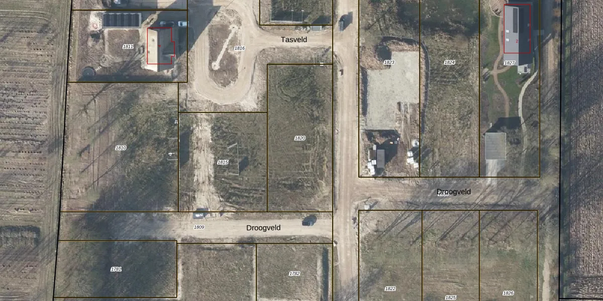 Het perceel waarop Tasveld 1 staat heeft een oppervlakte van 1064 m². Dit is een zeer groot perceel. De perceeloppervlakte wordt geregistreerd door het Kadaster. Gedetailleerde informatie over de maten van dit perceel kunt u vinden in het rapport Kadastrale kaart met maatvoering van Tasveld 1.