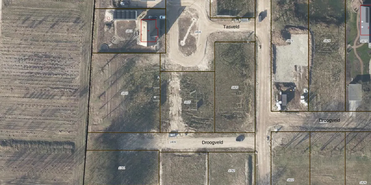 Het perceel waarop Tasveld 2 staat heeft een oppervlakte van 973 m². Dit is een groot perceel. De perceeloppervlakte wordt geregistreerd door het Kadaster. Gedetailleerde informatie over de maten van dit perceel kunt u vinden in het rapport Kadastrale kaart met maatvoering van Tasveld 2.