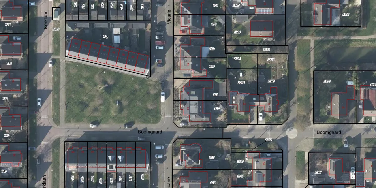 Het perceel waarop Vicarie 21 staat heeft een oppervlakte van 332 m². Dit is een groot perceel. De perceeloppervlakte wordt geregistreerd door het Kadaster. Gedetailleerde informatie over de maten van dit perceel kunt u vinden in het rapport Kadastrale kaart met maatvoering van Vicarie 21.