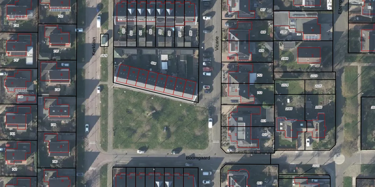 Het perceel waarop Vicarie 34 staat heeft een oppervlakte van 1109 m². Dit is een zeer groot perceel. De perceeloppervlakte wordt geregistreerd door het Kadaster. Gedetailleerde informatie over de maten van dit perceel kunt u vinden in het rapport Kadastrale kaart met maatvoering van Vicarie 34.