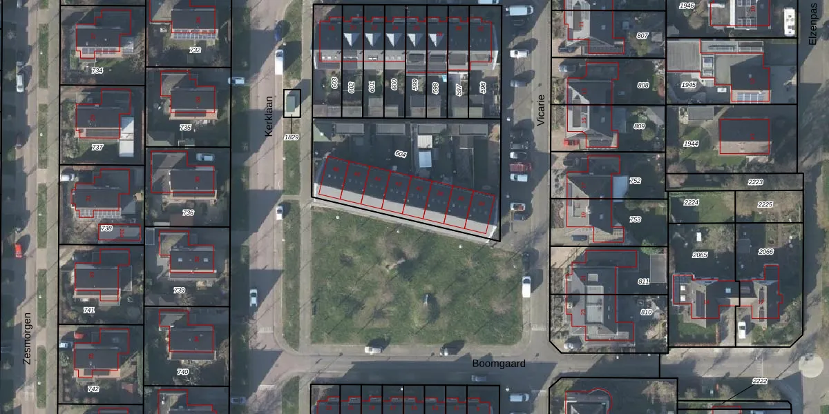 Het perceel waarop Vicarie 40 staat heeft een oppervlakte van 1109 m². Dit is een zeer groot perceel. De perceeloppervlakte wordt geregistreerd door het Kadaster. Gedetailleerde informatie over de maten van dit perceel kunt u vinden in het rapport Kadastrale kaart met maatvoering van Vicarie 40.
