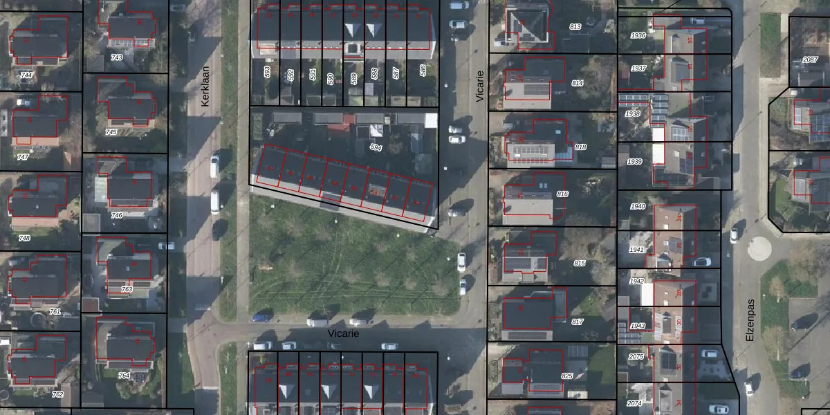 Het perceel waarop Vicarie 50 staat heeft een oppervlakte van 1104 m². Dit is een zeer groot perceel. De perceeloppervlakte wordt geregistreerd door het Kadaster. Gedetailleerde informatie over de maten van dit perceel kunt u vinden in het rapport Kadastrale kaart met maatvoering van Vicarie 50.