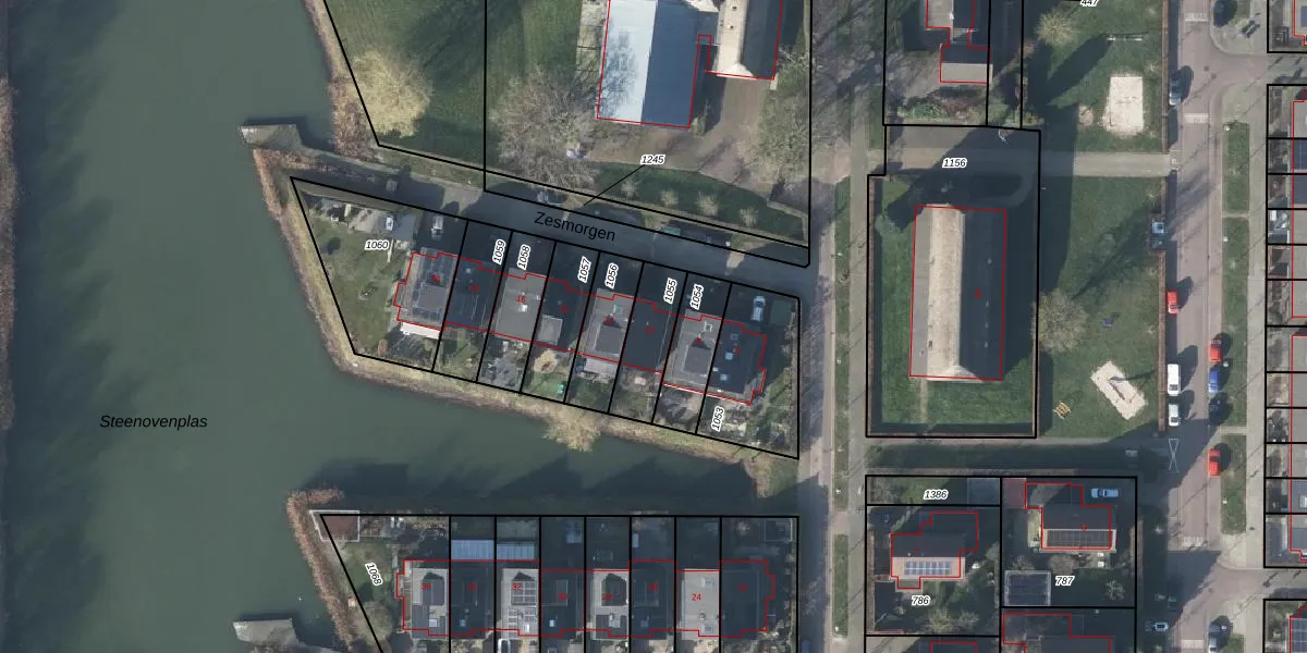Gebruik de zoekbalk of klik op een perceel voor informatie over de adressen binnen dit perceel.