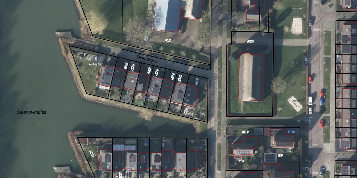 Het perceel waarop Zesmorgen 8 staat heeft een oppervlakte van 165 m². Dit is een middelgroot perceel. De perceeloppervlakte wordt geregistreerd door het Kadaster. Gedetailleerde informatie over de maten van dit perceel kunt u vinden in het rapport Kadastrale kaart met maatvoering van Zesmorgen 8.