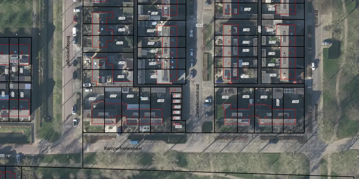 Het perceel waarop Zonnekruidstraat 32 staat heeft een oppervlakte van 318 m². Dit is een groot perceel. De perceeloppervlakte wordt geregistreerd door het Kadaster. Gedetailleerde informatie over de maten van dit perceel kunt u vinden in het rapport Kadastrale kaart met maatvoering van Zonnekruidstraat 32.