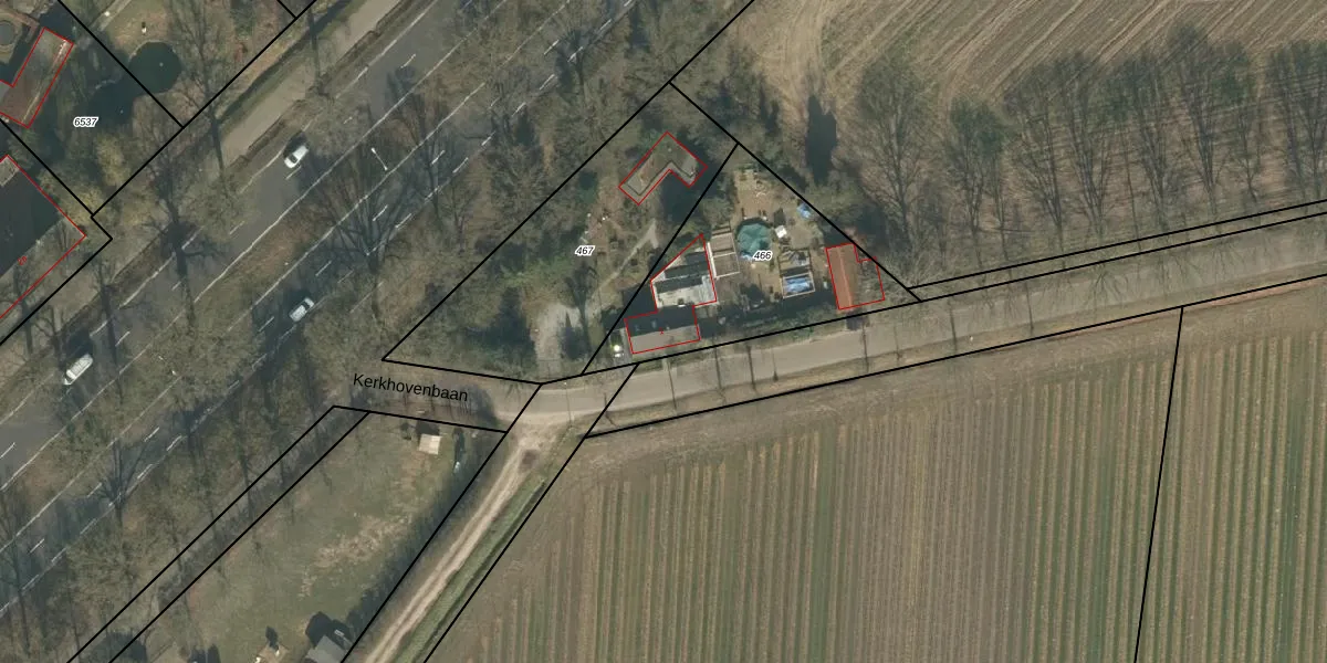 Kerkhovenbaan 1 is gelegen op kadastraal perceel OTW01H466. Deze kadastrale aanduiding is uniek en wordt gebruikt door het Kadaster om eigendomsrechten en andere zakelijke rechten vast te leggen. Het perceel maakt onderdeel uit van de kadastrale gemeente Oisterwijk.