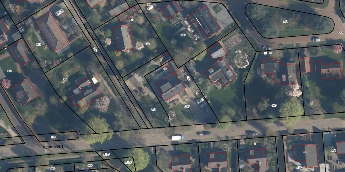 Het perceel waarop Achterweg 12 staat heeft een oppervlakte van 895 m². Dit is een groot perceel. De perceeloppervlakte wordt geregistreerd door het Kadaster. Gedetailleerde informatie over de maten van dit perceel kunt u vinden in het rapport Kadastrale kaart met maatvoering van Achterweg 12.