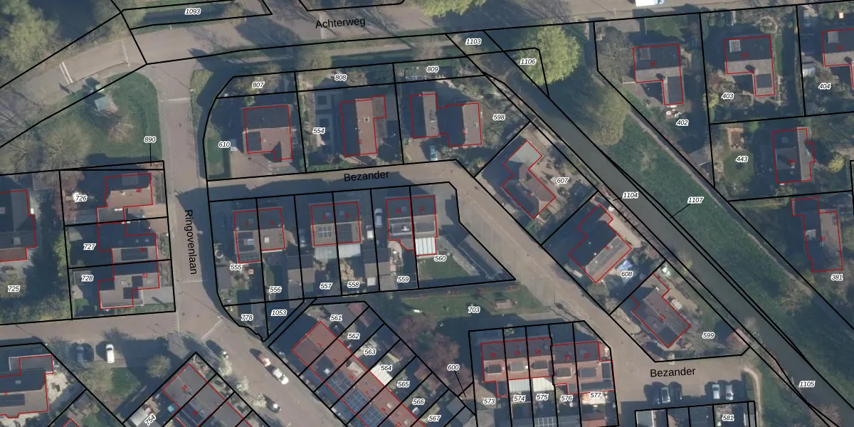 Het perceel waarop Bezander 12 staat heeft een oppervlakte van 355 m². Dit is een groot perceel. De perceeloppervlakte wordt geregistreerd door het Kadaster. Gedetailleerde informatie over de maten van dit perceel kunt u vinden in het rapport Kadastrale kaart met maatvoering van Bezander 12.