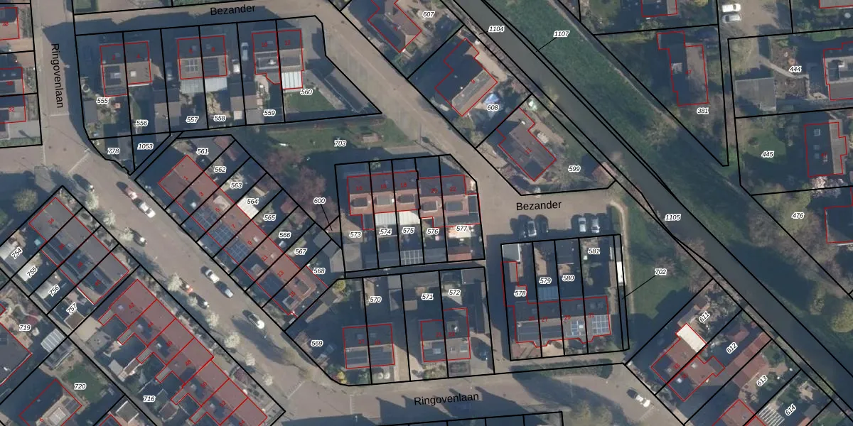 Gebruik de zoekbalk of klik op een perceel voor informatie over de adressen binnen dit perceel.