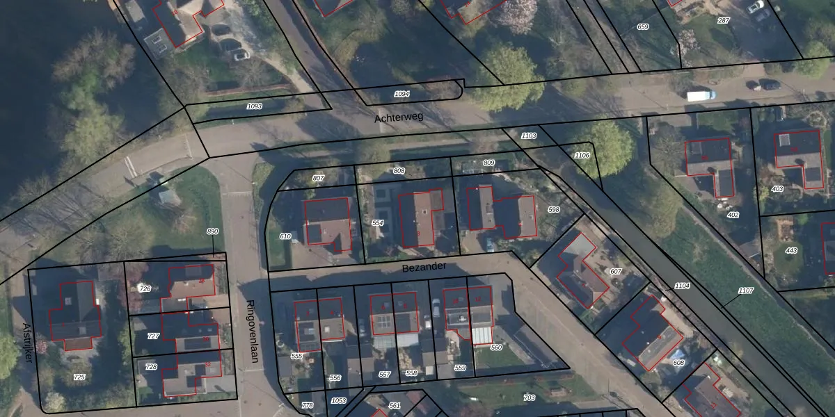 Gebruik de zoekbalk of klik op een perceel voor informatie over de adressen binnen dit perceel.