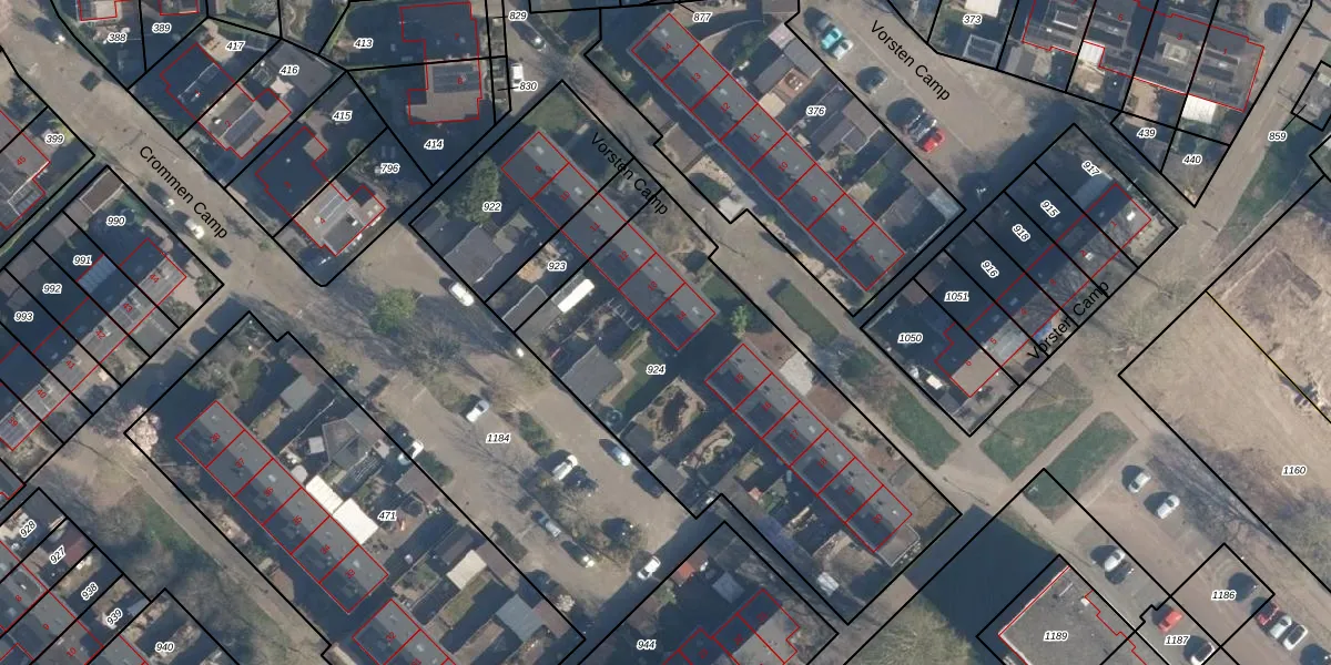 Het perceel waarop Crommen Camp 14 staat heeft een oppervlakte van 1808 m². Dit is een zeer groot perceel. De perceeloppervlakte wordt geregistreerd door het Kadaster. Gedetailleerde informatie over de maten van dit perceel kunt u vinden in het rapport Kadastrale kaart met maatvoering van Crommen Camp 14.