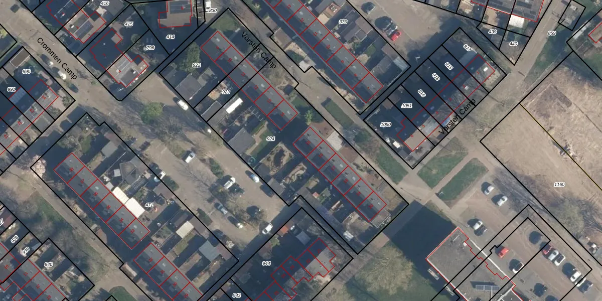 Het perceel waarop Crommen Camp 15 staat heeft een oppervlakte van 1808 m². Dit is een zeer groot perceel. De perceeloppervlakte wordt geregistreerd door het Kadaster. Gedetailleerde informatie over de maten van dit perceel kunt u vinden in het rapport Kadastrale kaart met maatvoering van Crommen Camp 15.