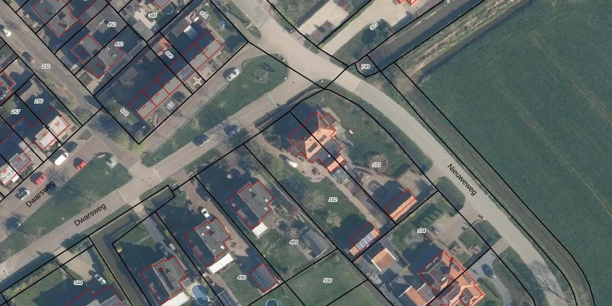 Gebruik de zoekbalk of klik op een perceel voor informatie over de adressen binnen dit perceel.