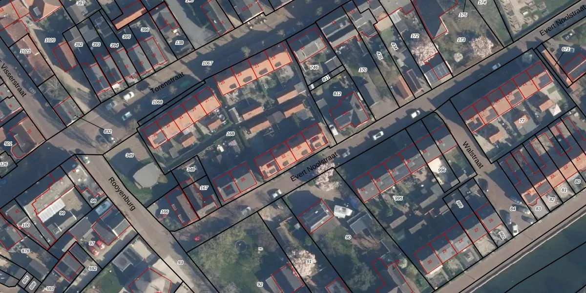 Evert Noolstraat 30 is gelegen op kadastraal perceel HKL00C168. Deze kadastrale aanduiding is uniek en wordt gebruikt door het Kadaster om eigendomsrechten en andere zakelijke rechten vast te leggen. Het perceel maakt onderdeel uit van de kadastrale gemeente Heukelum.