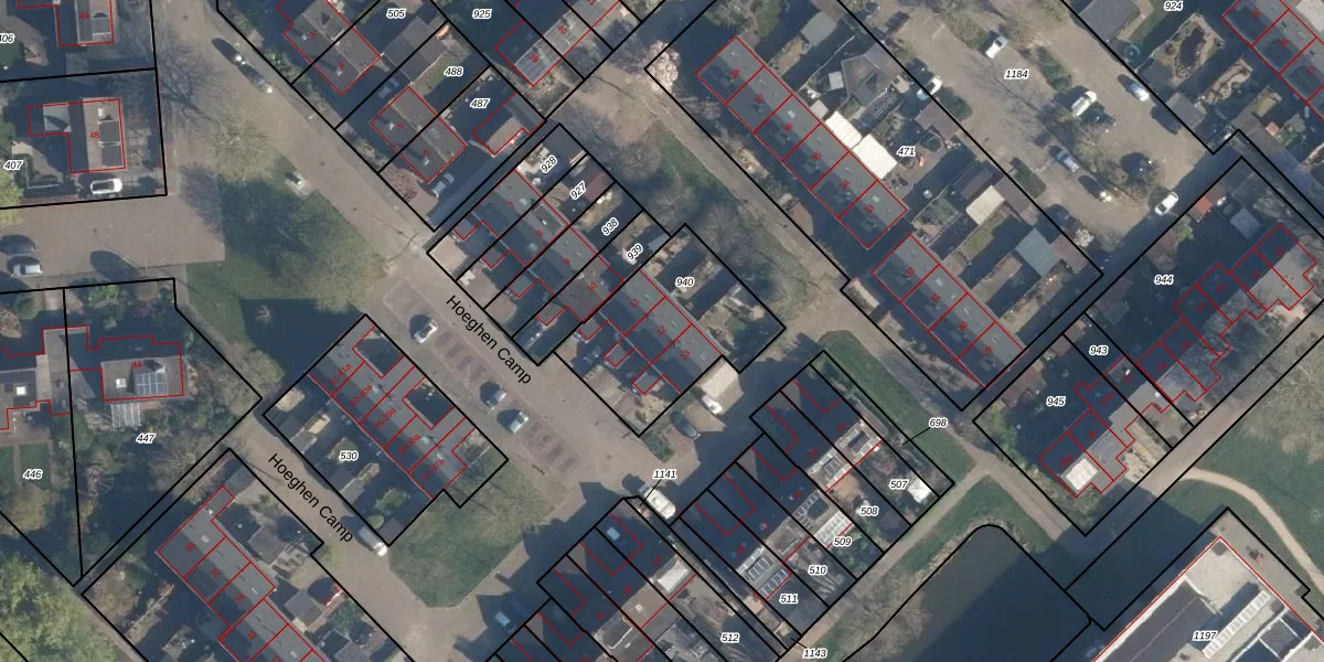 Het perceel waarop Hoeghen Camp 12 staat heeft een oppervlakte van 536 m². Dit is een groot perceel. De perceeloppervlakte wordt geregistreerd door het Kadaster. Gedetailleerde informatie over de maten van dit perceel kunt u vinden in het rapport Kadastrale kaart met maatvoering van Hoeghen Camp 12.